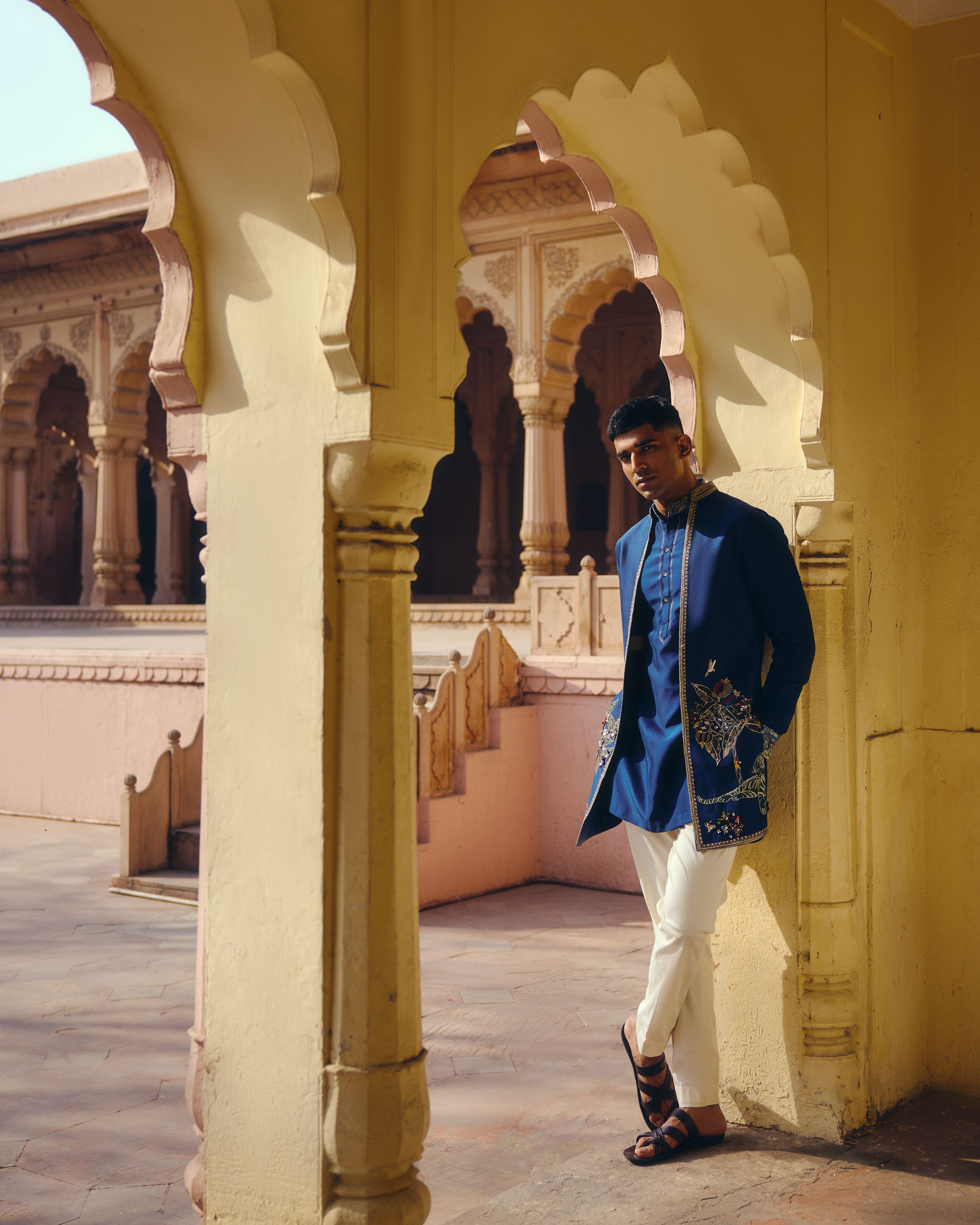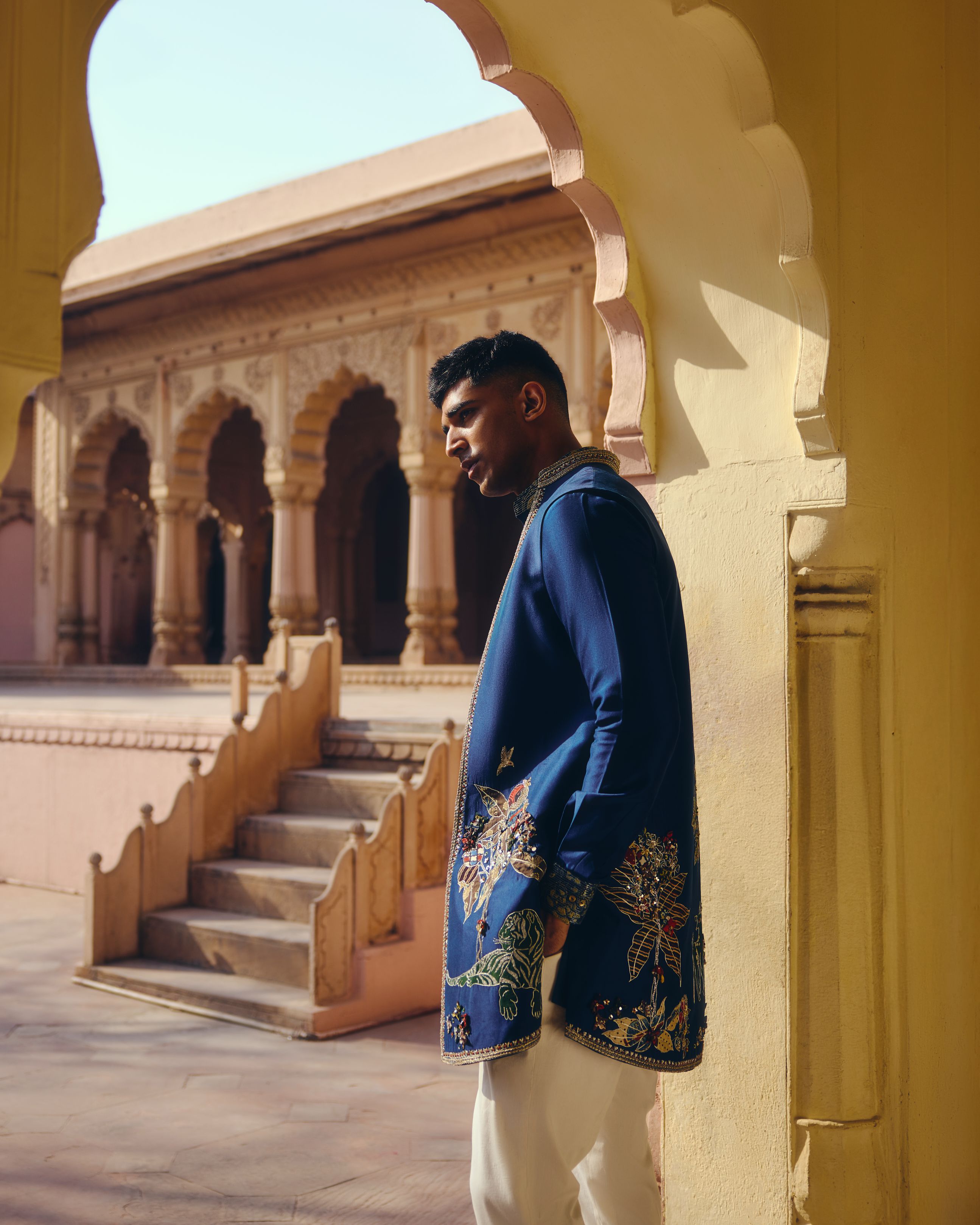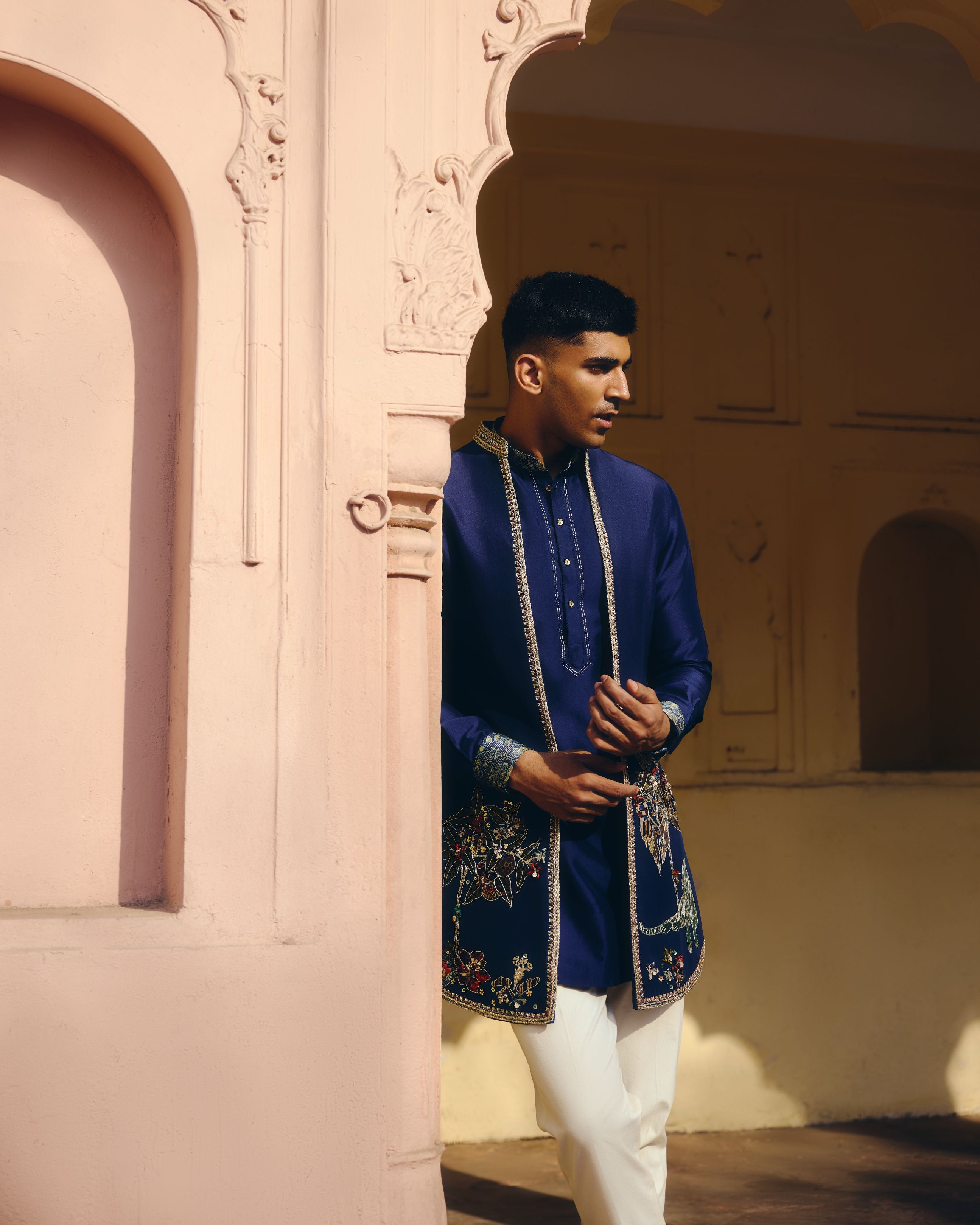 Mithuli brings together old-world charm and modern style. With nature-inspired motifs, rich fabrics, and bold, festive colours, each piece blends traditional crafts like Ajrakh and appliqu with contemporary silhouettes—perfect for making a statement with meaning.